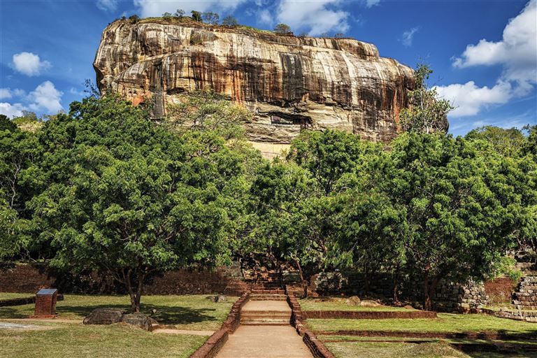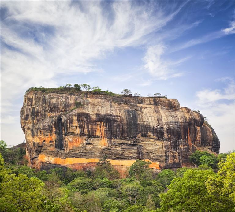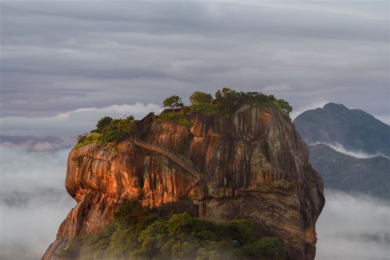 Im Landesinneren Sri Lankas erhebt sich der majestätische Löwenfelsen von Sigiriya, ein gewaltiger Monolith. Sein Name leitet sich vom singhalesischen "Singha Giri" ab und bedeutet "Löwenfelsen". Der 200 Meter hohe Magmablock eines erloschenen Vulkans ragt eindrucksvoll aus dem dichten Grün des Dschungels und zählt heute zu den bekanntesten Sehenswürdigkeiten Sri Lankas.